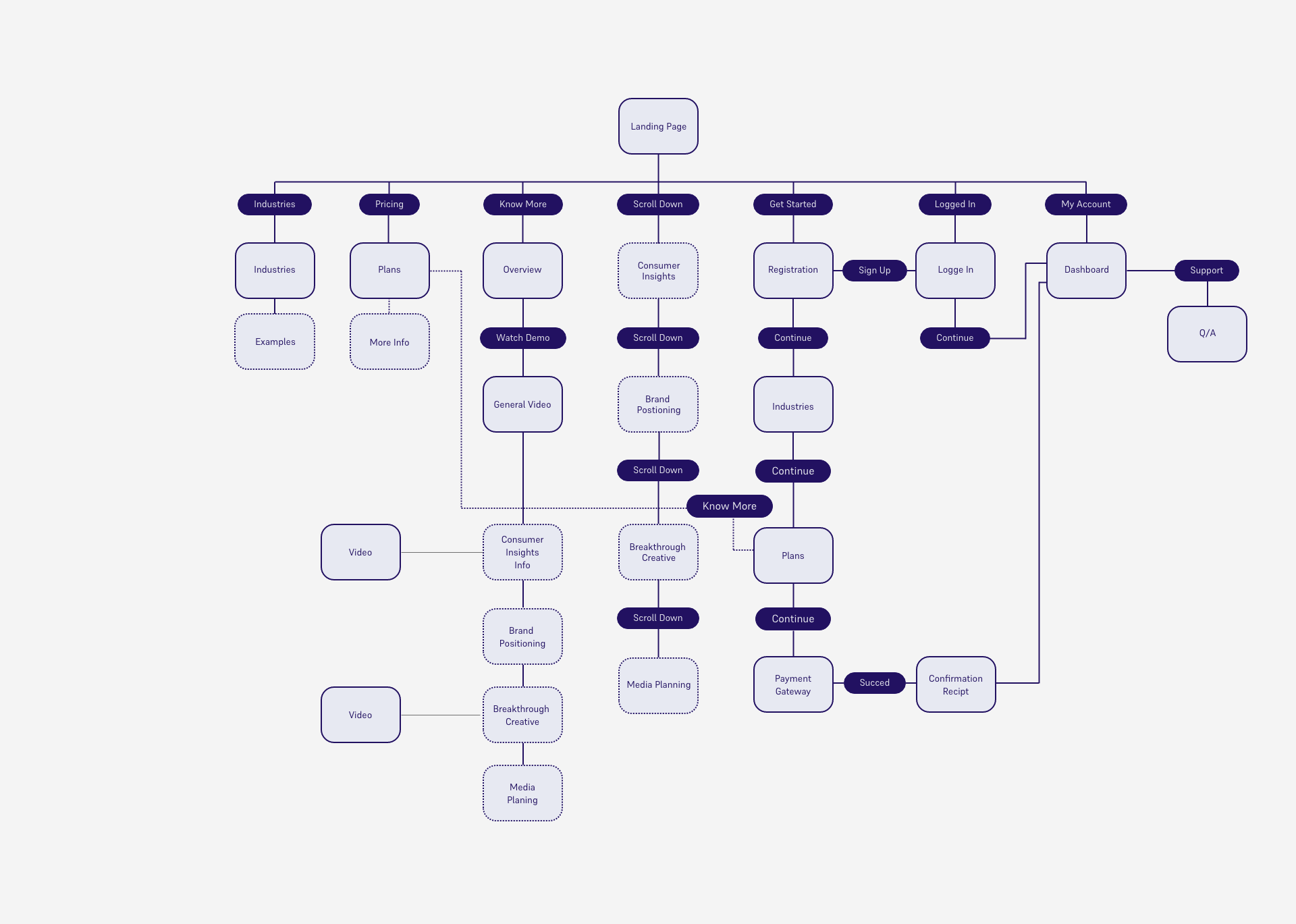As Adwow is currently in its first stage, our goal was to establish a solid foundation in terms of graphic strategies and UX/UI design. The project focused on two main objectives: creating a look and feel that allows for the organic growth of digital interfaces and web applications, and managing the project with respect to UX/UI requirements. This included the development of sitemaps, wireframes, and addressing potential issues to consider during product development.