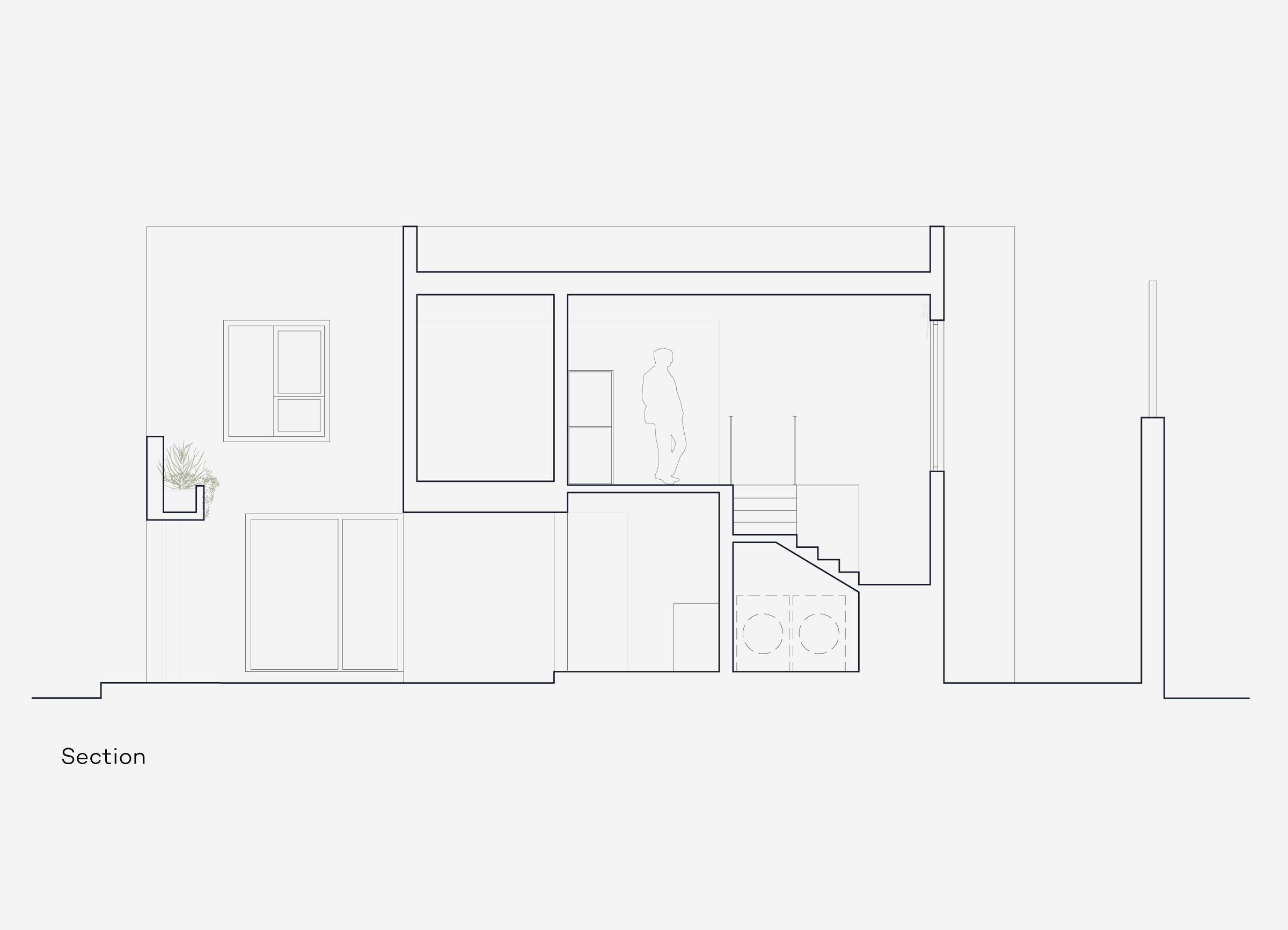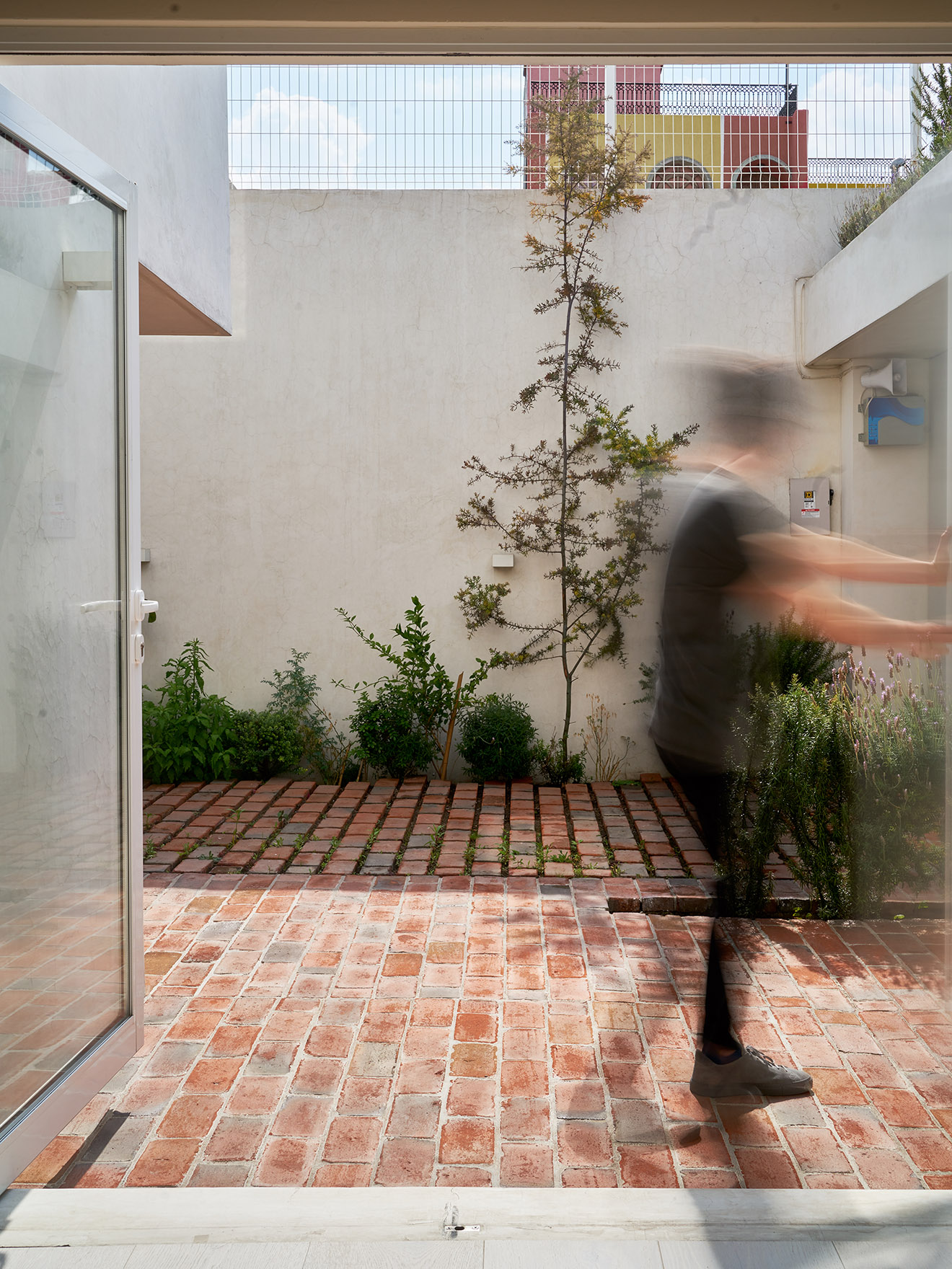 Most of the original structure was kept intact, focusing on the possibilities of the existing shape of the house. New windows were opened to the south to provide light to key areas, while a double brick wall was built on the façade to enhance sound insulation and thermal properties.