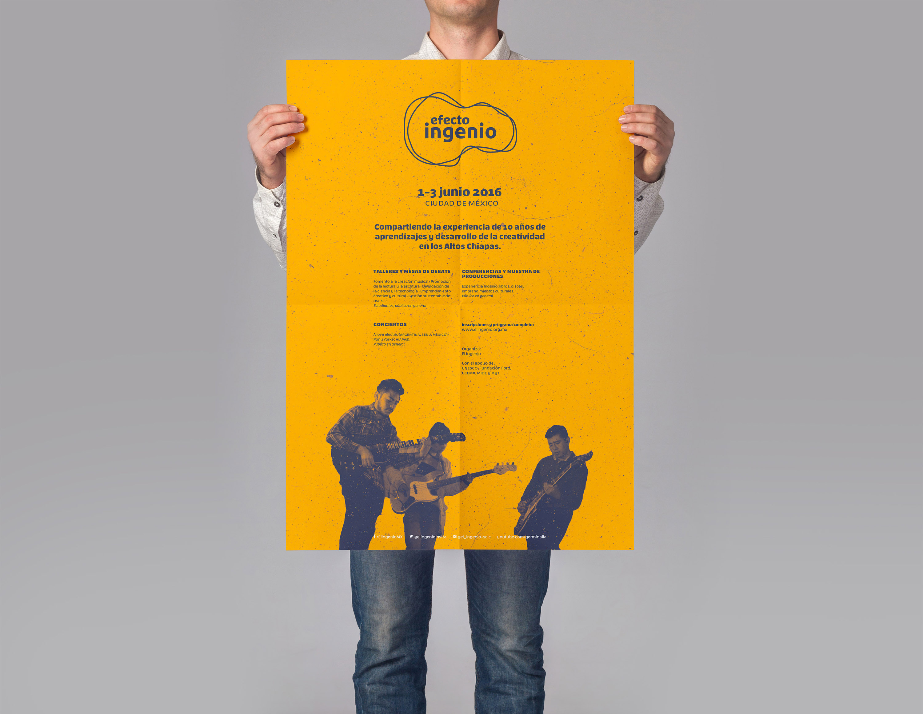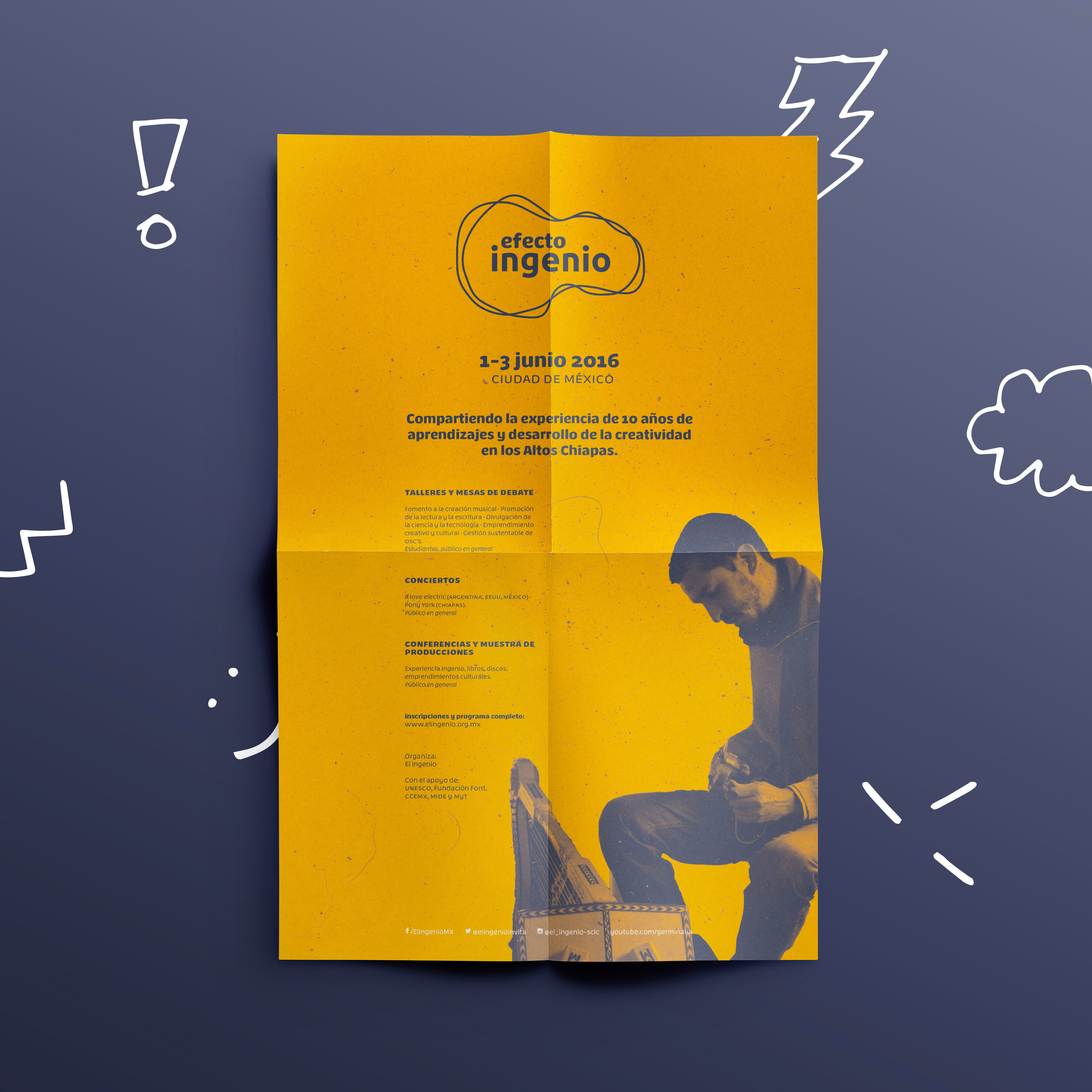 El Ingenio is a non-profit organization located in Chiapas, Mexico. Its goal is to benefit children with workshops and educational resources to improve their communities. To celebrate its 10th anniversary, an event called “Ingenuity Effect” was organized by its founders. The project was challenging as it required the rapid development of a graphic system suitable for all event applications. Additionally, the graphic strategy had to consider a limited production budget.